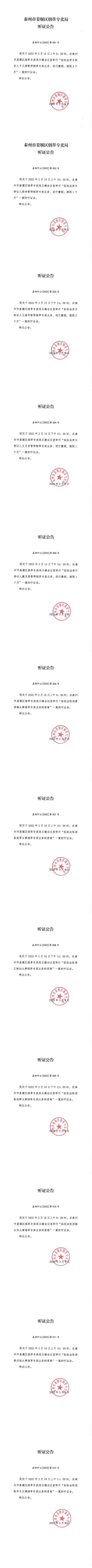 区烟草专卖局听证公告(2022年3月9日)