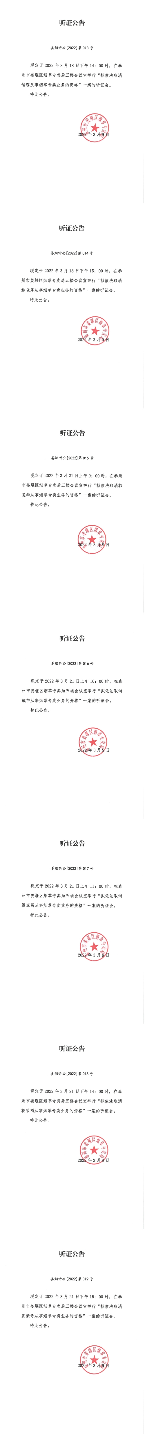 泰州市姜堰区烟草专卖局听证公告(2022年3月9日).pdf