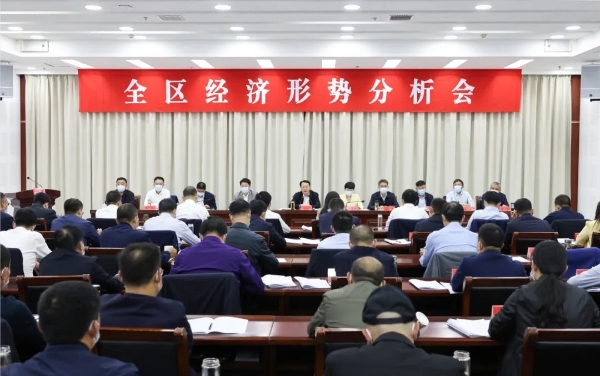 习近平总书记在党的二十大报告中指出,高质量发展是全面建设社会主义现代化国家的首要任务。10月20日,我区召开全区经济形势分析会。区委书记方针强调,各镇街(园区)、部门要聚焦推动高质量发展主题,以“时时放心不下”的责任感、“勇挑大梁”的使命感,紧盯全年目标任务抓实效、强作为,全力以赴争取全年最好成绩。区委副书记、区长孙靓靓传达学习全市经济形势分析会议精神,并作工作部署。区领导钱军、潘勇、盛育河、王荣明、申兵、陆锋、滕智东、王凯参加会议。