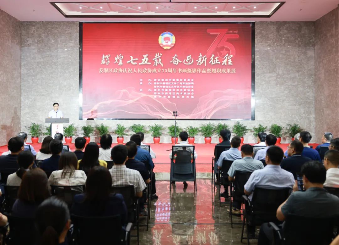 区政协主席戴兆平在致辞中说——近年来,区政协紧扣区委、区政府中心工作和群众关心的热点话题,认真开展履职活动,大力推进协商文化培育、委派民主监督、主题委员工作室等特色工作。这次展览,是经济社会发展成果的具体体现、是政协履职实践活动的集中展示、是委员履职担当作为的新的起点。希望广大政协委员以此次活动为契机,学深悟透做实习近平总书记关于加强和改进人民政协工作的重要思想,认真贯彻落实习近平总书记在庆祝人民政协成立75周年大会上的讲话精神,锚定“康养名城 活力姜堰”发展定位,认真履职尽责,主动担当作为,坚持双向发力,广泛凝聚共识,为因地制宜发展新质生产力、扎实稳健推进中国式现代化姜堰新实践贡献更多智慧和力量。