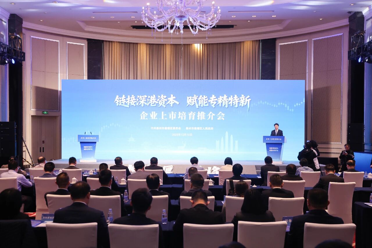 汇聚湾区金融活水,浇灌姜堰创新沃土。12月10日我区在深圳举办“链接深港资本 赋能专精特新”企业上市培育推介会,深度链接粤港澳大湾区丰沛的资本与创新资源,助推优质企业加速登陆资本市场,为区域经济高质量发展注入金融活水。广州市政府副秘书长、一级巡视员高裕跃,华润隆地有限公司总经理温雪飞,广州广日股份有限公司党委书记、董事长朱益霞,中兴通讯股份有限公司高级副总裁张健鹏,港交所助理副总裁王旭,深交所市场发展部高级经理黄丽娜,深圳市创新投资集团有限公司江苏投资部负责人王大鹏,普华永道中国审计合伙人甘莉莉,中信证券股份有限公司投资银行管理委员会、半导体行业负责人孙一宁,美迈斯律师事务所资深律师高哲,以及粤港澳大湾区知名投资机构、证券交易所、会计师事务所、律师事务所、姜堰“专精特新”企业代表,区领导孙靓靓、钱军、孔纬、冒云参加会议。