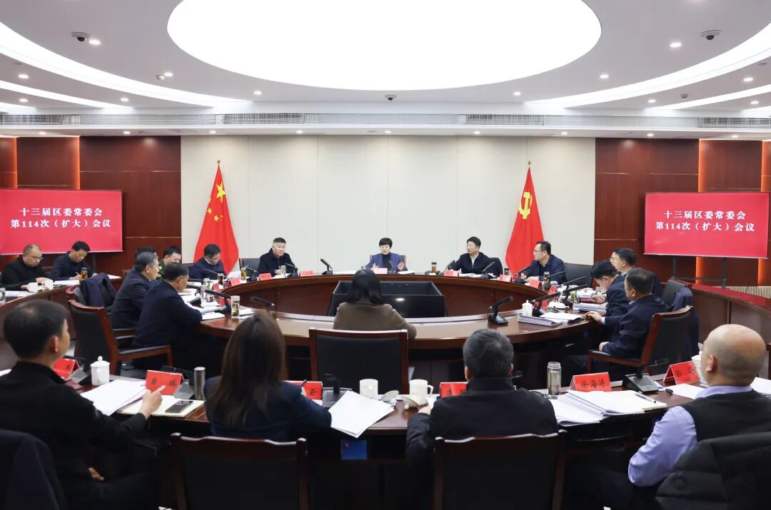 12月30日,十三届区委召开第114次常委会(扩大)会议,传达学习习近平总书记关于树立和践行正确政绩观的重要论述,习近平总书记近期重要指示重要讲话精神,以及中央、省委、市委有关会议精神,听取意识形态、林长制、食品安全等工作情况汇报,研究部署当前重点工作。区委书记、区人大常委会主任孙靓靓主持会议。