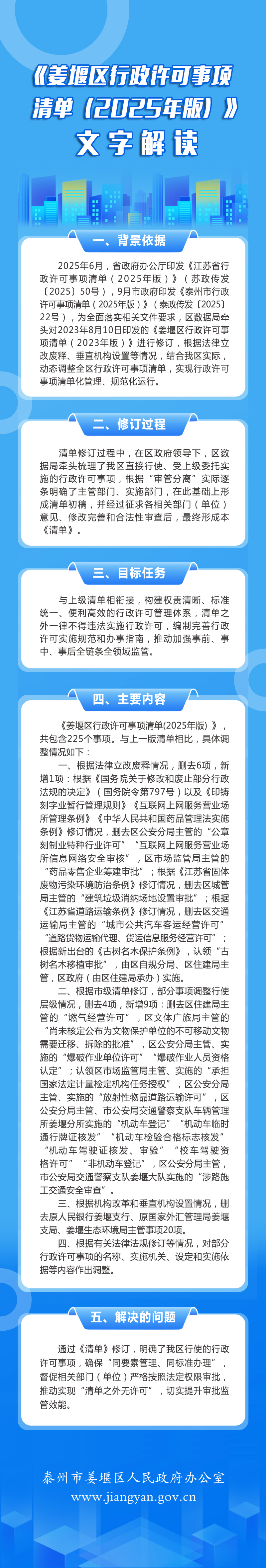 《关于公布<姜堰区行政许可事项清单(2025年版)>的通知》文字解读