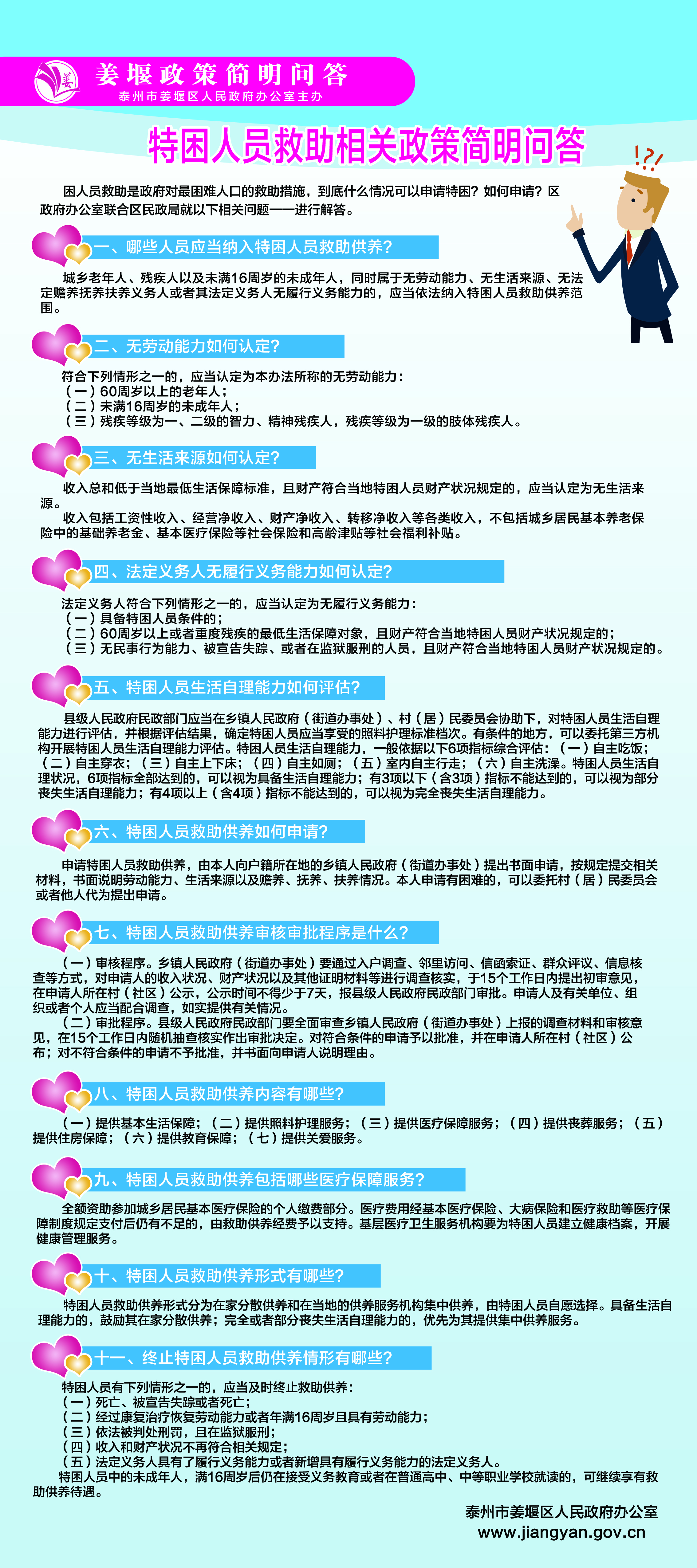 姜堰政策简明问答:特困人员救助相关政策简明问答