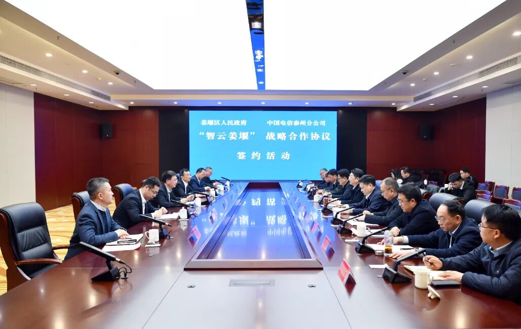3月10日,区政府与中国电信泰州分公司签署“智云姜堰”战略合作协议。区委副书记、区长钱军,中国电信泰州分公司党委书记、总经理潘军出席活动并讲话。区领导李伯群、孔纬参加活动。