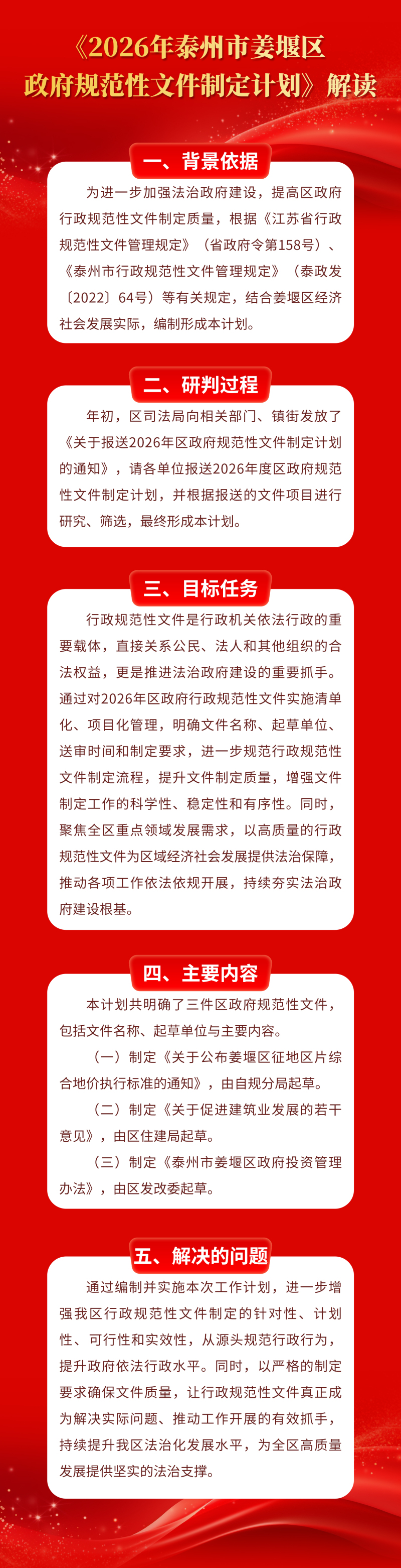 《关于印发<2026年泰州市姜堰区政府行政规范性文件制定工作计划>的通知》文字解读
