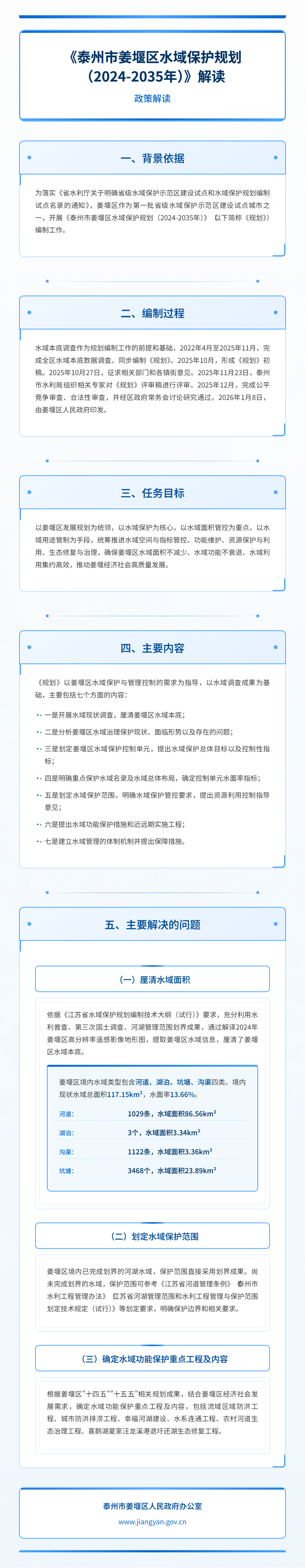 《关于印发<泰州市姜堰区水域保护规划(2024-2035年)>的通知》文字解读